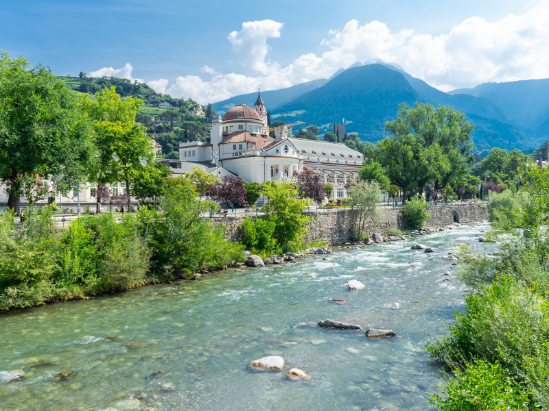 Merano is een charmante kuurstad die bekendstaat om zijn milde klimaat, prachtige promenades en groene omgeving. In de 19e eeuw was de stad een populaire bestemming voor Europese adel en dat zie je nog steeds terug in de elegante villa’s en historische gebouwen. Een van de mooiste plekken in Merano zijn de botanische tuinen van Schloss Trauttmansdorff waar je door verschillende tuinen en landschappen wandelt met uitzicht op de bergen. Ook de moderne thermale baden van Merano zijn een geliefde plek om te ontspannen na een actieve dag in de natuur.
